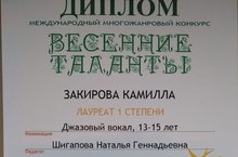 Международный многожанровый конкурс "Весенние таланты" номинация "Джазовая песня" 10.04.2020