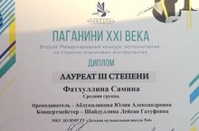 8 февраля 2020 года, прошел II Международный конкурс исполнителей на струнно-смычковых инструментах "Паганини XXI века" в г.Казань, где учащиеся ДМШ № 4 приняли участие.