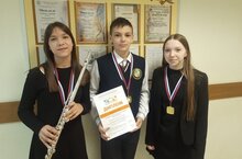 Сводное трио флейтистов Рябов Максим, Клешнина Дарина, Талипова Лейсян - лауреаты I степени