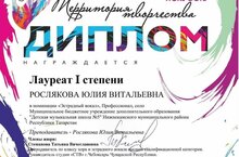 30 октября, преподаватель по классу вокала и хора "Детской музыкальной школы №5" - Рослякова Юлия Витальевна приняла участие в Международном конкурсе искусств "Территория творчества", где стала Лауреатом I степени.