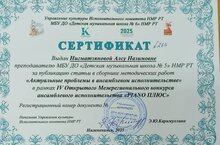 19 декабря, преподаватель фортепианного отдела "Детской музыкальной школы №5" опубликовала статью в сборнике методических работ "Актуальные проблемы в ансамблевом исполнительстве" в рамках IV Открытого Межрегионального конкурса ансамблевого исполнительства "Пиано Плюс".
