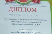 20 апреля во "Дворце творчества детей и молодежи им И.Х Садыкова" состоялся муниципальный фестиваль-конкурс кураистов "Яшь курайчылар", посвященного 100-летию образования ТАССР, на котором учащиеся "Детской музыкальной школы №5" отлично выступили и заняли призовые места: ансамбль кураистов "Тургай"- Лауреат I степени, Салдеева Арина - Лауреат I степени(преподаватель Гильманова Л.Р). Поздравляем!!! Желаем дальнейших творческих успехов!!!