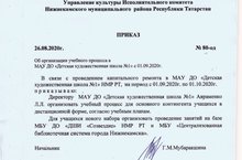 31 августа МАУ ДО "ДХШ №1" НМР РТ в рамках визита в наш город, посетила уполномоченное лицо Президента РТ Гульзада Ракиповна Руденко (она же директор музея - заповедника Елабуги). Она осмотрела ход капитального ремонта в школе и поделилась идеями развития сферы культуры через учреждения дополнительного образования Министерства культуры РТ. 31.08.2020