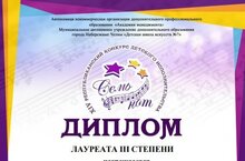 Лауреатами III степени - Газизов Ильназ (преп. Обыскалова Е.А., конц. Иванова С.Г.); Туйбарсова Ева, Смолин Михаил, Буторина Анастасия (преп. Рассказчикова Т.А., конц. Гузаева Л.В.).