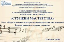 29 марта в ДШИ "Созвездие" состоялся VI Открытый республиканский научно-практический семинар "Ступени мастерства", в котором участниками-выступающими стали 22 преподавателя и воспитанника ДМШ и ДШИ Республики Татарстан. Прозвучали интересные доклады, показаны уроки преподавателей хора, вокала, работа с детьми с ОВЗ, воспитанники школ представили презентации своих исследовательских работ в номинации для учащихся "Мой первый шаг к мастерству". Кроме выступлений подано 30 заявок на публикации работ в электронном сборнике по итогам семинара.