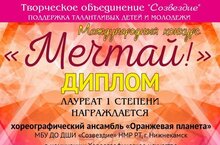 Хореографический ансамбль "Оранжевая планета" в декабре стал призером Международного конкурса "Мечтай!", организованным творческим объединением "Созвездие".