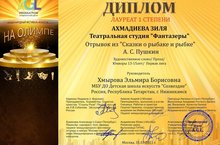 X Открытый Всероссийский детско-юношеский фестиваль-конкурс сценического мастерства "Если бы...": Ахмадиева Зиля - Лауреат III степени, Мальцева Эмилия - Лауреат II степени, Талерчик Михаил - Дипломант.