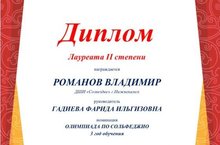 В олимпиаде приняли участие воспитанники преподавателя Гадиевой Ф.И.: Косенко Ирина и Романов Владимир - оба Лауреаты II степени и преподавателя Яруллиной Л.С.: Гильфанов Дамир, Габдрахманова Айгуль, Ермолина Маргарита - все Лауреаты I степени, Галимов Ислам - Дипломант I степени.
