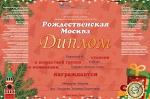 Поздравляем ученицу отделения "Театральное искусство" Мальцеву Эмилию (преп. Хмырова Э.Б.) - Лауреата II степени Всероссийского конкурса музыкально-художественного творчества "Рождественская Москва", номинация "Художественное слово".