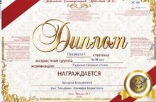 Также Захаров Климентий стал Лауреатом I степени "Всероссийской Олимриады Искусств".