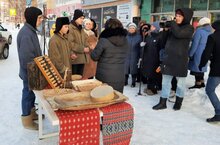 На открытой площадке возле торгового центра «Сити Молл» студенты агропромышленного колледжа организовали живую инсталляцию. Символом акции стал кусочек черного хлеба весом 125 г – такая минимальная норма была установлена в блокадном Ленинграде.