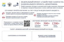 В рамках федерального проекта «Содействие занятости» национального проекта «Демография» ГАПОУ "Нижнекамский агропромышленный колледж" объявляет о начале набора слушателей на бюджетной основе по программе профессиональной подготовки по направлениям: