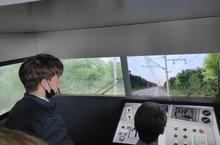 Молодые люди группы Э/21 первыми смогли опробовать свои силы на тренажёрах: управлять локомотивом, отремонтировать стрелочный перевод, реанимировать пострадавшего манекена Гошу, расформировать железнодорожный состав.