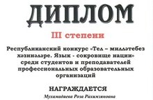 Участники ГАПОУ «Нижнекамский агропромышленный колледж» представили свои работы на Республиканском конкурсе «Тел –милләтебез хәзинәләре. Язык – сокровище нации» среди студентов и преподавателей профессиональных образовательных организаций.