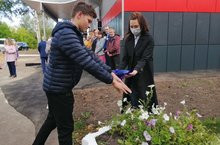 Она предложила участникам акции набрать воду из чаши в ладони и полить из рук цветы рядом со зданием колледжа. И это не случайно.
