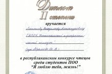 8 декабря 2017 года на базе ГАПОУ "Арского педагогического колледжа им. Г.Тукая" проводился республиканский конкурс чтецов "Я люблю тебя жизнь", посвященный творчеству Б.Ахмадулиной и Р.Рождественскому. Леонтьев Владимир, студент 2 курса группы №148 выступил с чтением стихотворения Р.Рождественского "Быть человеком". Зрителей и жюри глубоко взволновало выступление нашего студента, артистизм его исполнения. Результат - 2 место: Диплом 2 степени. Дал интервью, в котором раскрыл глубокую любовь к миру поэзии , к патриотизму.