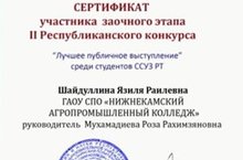 Студенты ГАОУ СПО «Нижнекамский агропромышленный колледж» уже второй год принимают активное участие в данном мероприятии. В этом году участники представляли видеоролик с записью выступления, который размещали на сайте Организатора республиканского конкурса. Выступления студентов агропромышленного колледжа были содержательными и доступными в понимании изложения материала; логически завершенными; актуальными.