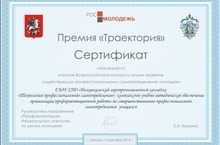 В декабре 2013 г. ГАОУ СПО НК АПК принял активное участие во Всероссийском конкурсе на присуждение Премии «Траектория» за лучшие проекты, содействующие профессиональному самоопределению молодежи. Авторский коллектив Ибрагимовой Г.Г., Ридовановой З, Н., Шалаева Е.В. под руководством Титова С.В. представил проект на тему «Паблик рилейшнз (ПР) как эффективное средство профориентационной работы и поддержания положительного имиджа Государственного автономного образовательного учреждения среднего профессионального образования «Нижнекамский агропромышленный колледж» (программа организации профориентационной работы)».