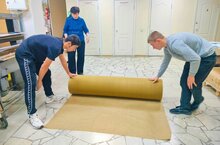 Студенты ГАПОУ НКТИ, вооружившись навыками и энтузиазмом, приступили к размотке рулонов специальной ткани. Они аккуратно разматывали рулоны, превращая их в прямоугольные пласты, которые затем складывали в аккуратные стопки. Этот этап требовал высокой точности и внимательности, чтобы обеспечить ровное распределение ткани.