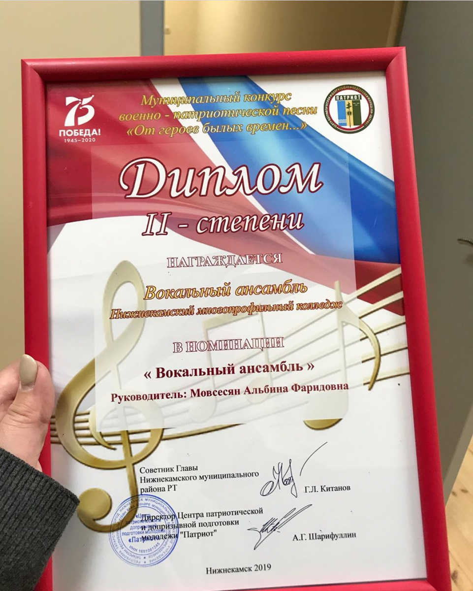 Наш вокальный ансамбль был награжден дипломом ВТОРОЙ СТЕПЕНИ. Поздравляем!!
