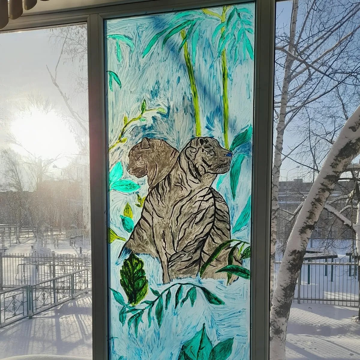 Студенты нашего колледжа традиционно создают атмосферу зимней сказки, расписывая окна к Новому году.
