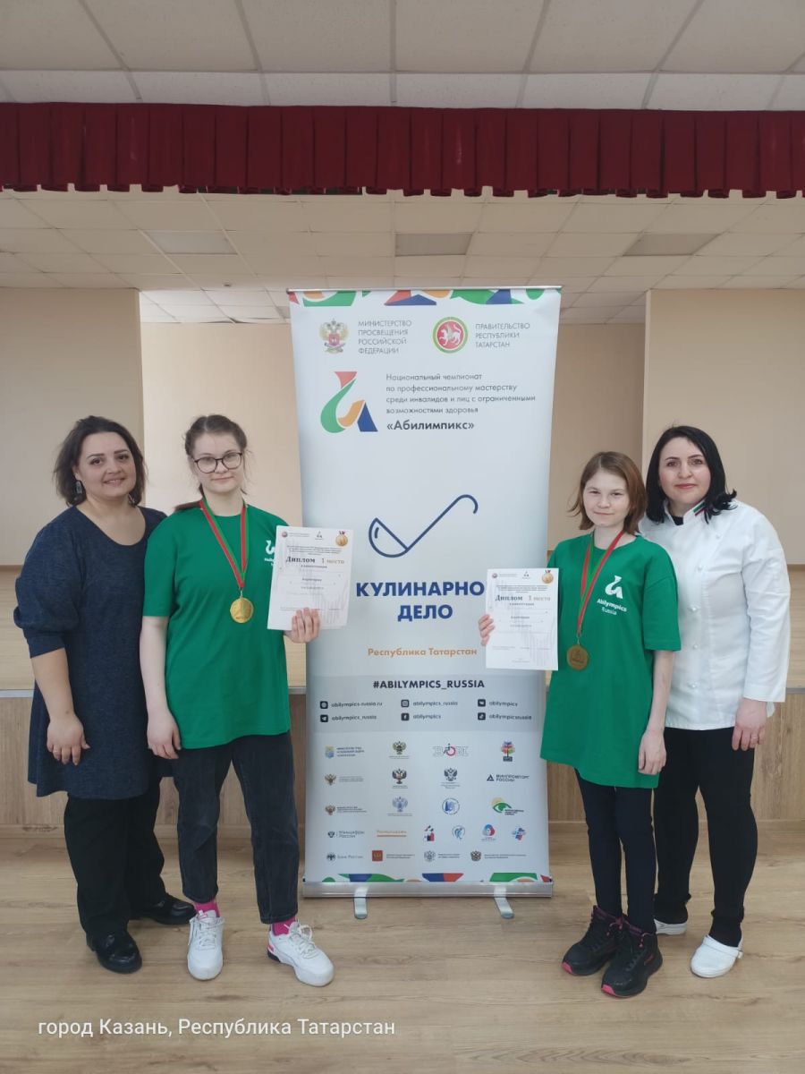 Опубликовано: 05.05.2022В Республиканском этапе VIII Национального чемпионата по профессиональному мастерству среди инвалидов и лиц с ограниченными возможностями здоровья "Абилимпикс" Студентки Нижнекамского Многопрофильного Колледжа Чикало Мария Юрьевна, Хайрутдинова Диляра Рамисовна заняли 1 место в компетенции "Кулинарное дело" в категории "Студенты" под руководством Гафур Ирина Владимировна, Ерашова Мария Николаевна. Поздравляем!