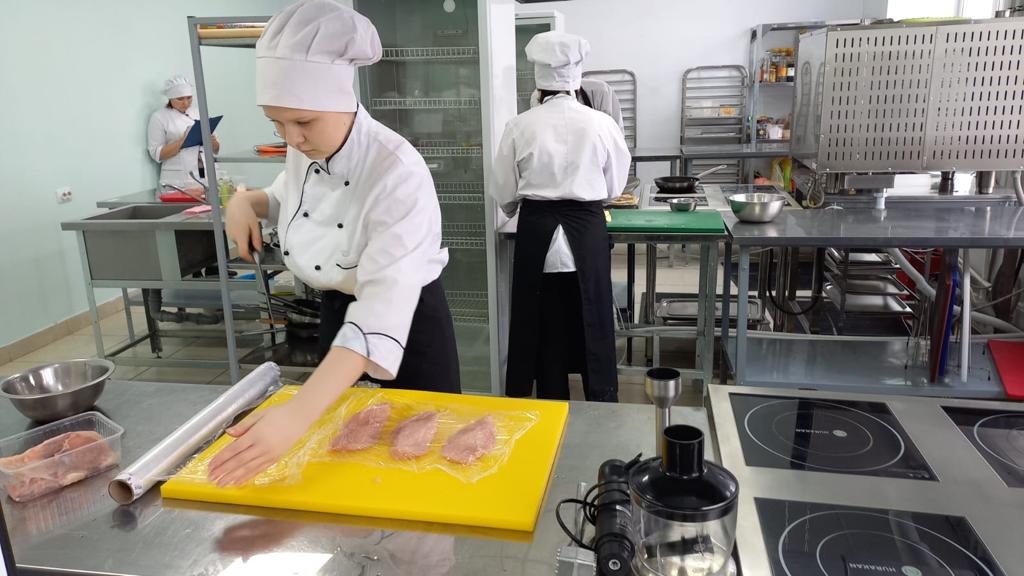 Студенты Нуртдинова Алия, Сабирова Айза, Бушенева Анастасия, представляющие наш колледж под руководством преподавателей Гафур И.В. и Ерашовой М.Н., показали высокий уровень теоретических знаний и практических навыков в соответствии с требованиями демонстрационного экзамена по компетенции Поварское дело. Сабирова Айза и Бушенева Анастасия выполняли практическую часть 2-го тура конкурса, готовили 3 порции горячего блюда из птицы, с двумя гарнирами, соусом. В конце работы они представили на суд жюри красиво и эстетично оформленное блюдо, получившее самую высокую оценку.