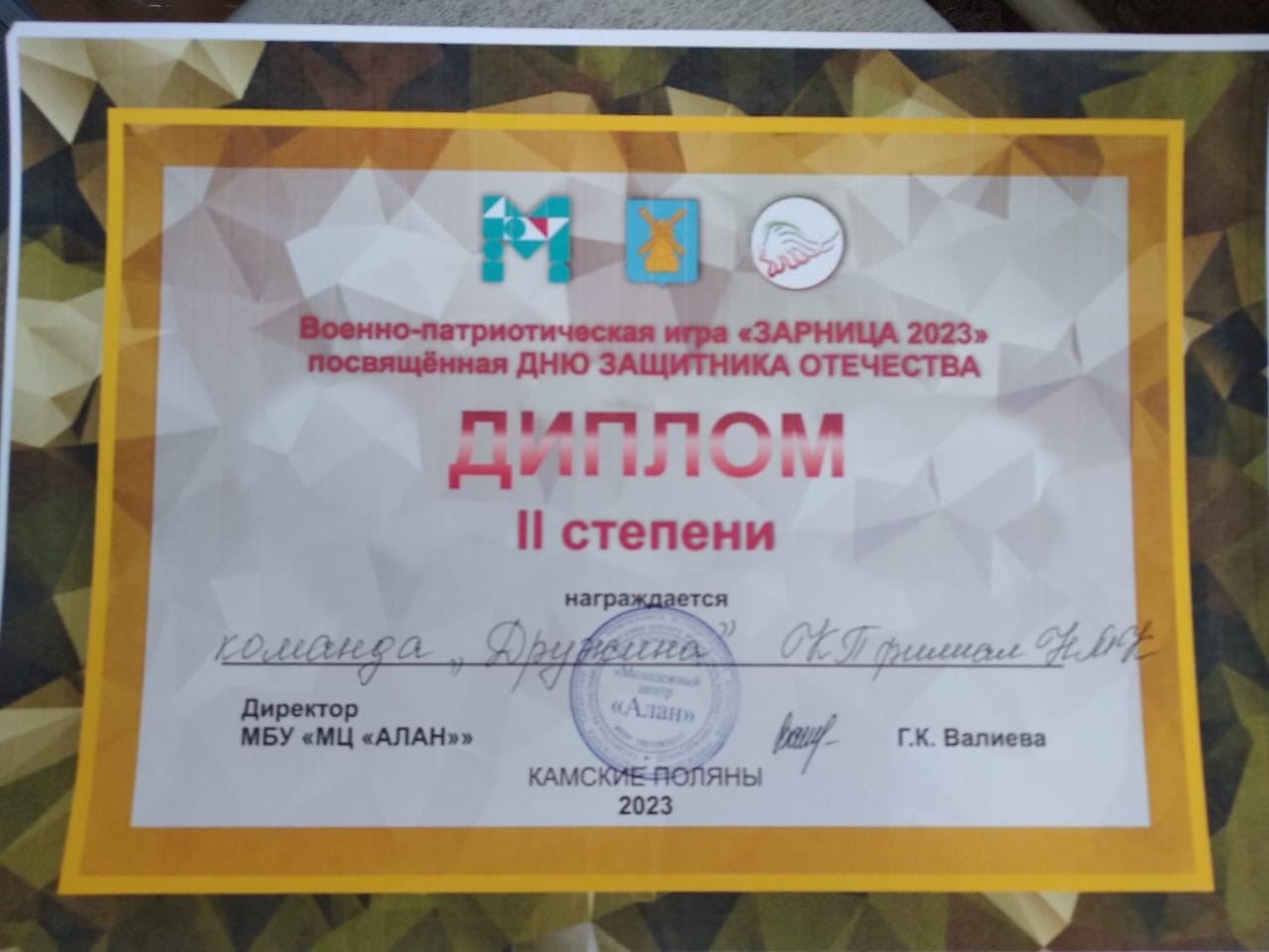 Опубликовано: 18.02.202318 февраля наша команда приняла участие в военно-спортивной игре «Зарница», конкурентами были команды средних общеобразовательных школ. Конкурс проходил в реальных условиях на базе МЧС ПЧ Камских Полян.