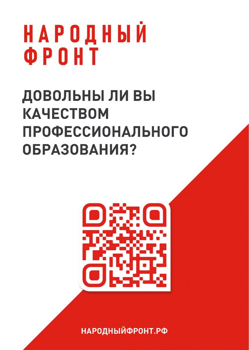 Опубликовано: 27.04.2023Общероссийское общественное движение «НАРОДНЫЙ ФРОНТ «ЗА РОССИЮ» осуществляет комплексный мониторинг в сфере среднего профессионального образования в формате онлайн-опроса