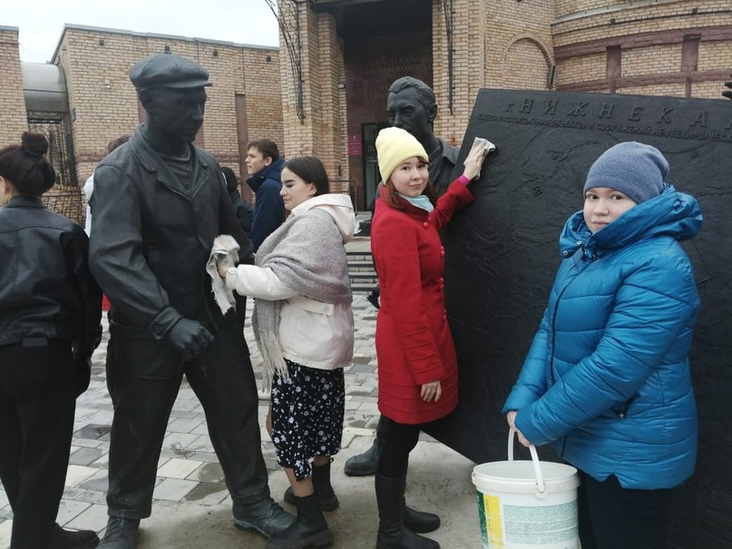 Опубликовано: 03.11.2023В рамках "Неделя добра" волонтёры из Нижнекамского многопрофильного колледжа приняли участие в субботнике в Нижнекамском городском музее. Помогли очистить от налёта фигуры памятника Первостроителям. Очистили газоны от опавшей листвы. Подмели территорию, прилегающую к музею.