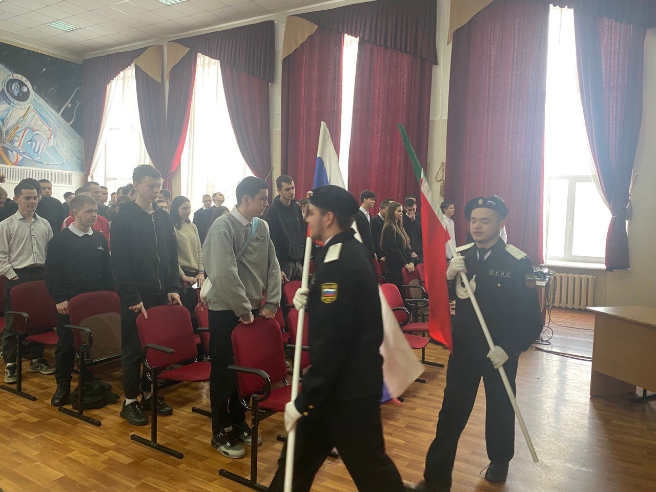 Право внести и установить флаг, было представлено знаменной группе 3 курса ТСП - 51.
