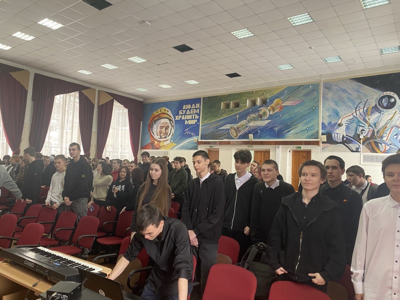 Опубликовано: 20.01.2024Новая учебная неделя начинается с поднятия и спуска флага, и исполнения Гимна РФ и РТ. Это особый ритуал, который проводится каждый понедельник и пятницу с ребятами ГАПОУ «Нижнекамский многопрофильный колледж». На линейке присутствуют обучающиеся с 1 по 4 курсы.