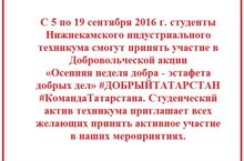 «Осенняя неделя добра - эстафета добрых дел» 07.09.2016
