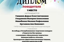Поздравляем команду студентов Нижнекамского индустриального техникума во главе с советником директора по воспитательной работе Гавшиной Дарьи Константиновны с ПОБЕДОЙ (1 место) в Республиканском творческом конкурсе "Творчество без границ" в номинации "Музыкальное творчество".