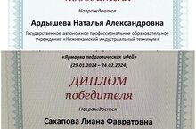 Очередными Дипломами победителя на V Всероссийском фестивале профессионального мастерства удостоены преподаватель специальных дисциплин Ардышева Наталья Александровна и преподаватель татарского языка Сахапова Лиана Фавратовна.