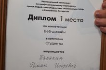 С 21 по 23 ноября 2018 года в Москве прошел IV Национальный чемпионат по профессиональному мастерству среди инвалидов и лиц с ограниченными возможностями здоровья "Абилимпикс". Студент Нижнекамского индустриального техникеума БАКАКИН РОМАН ИГОРЕВИЧ занял 3 место в компетенции Веб-дизайн.