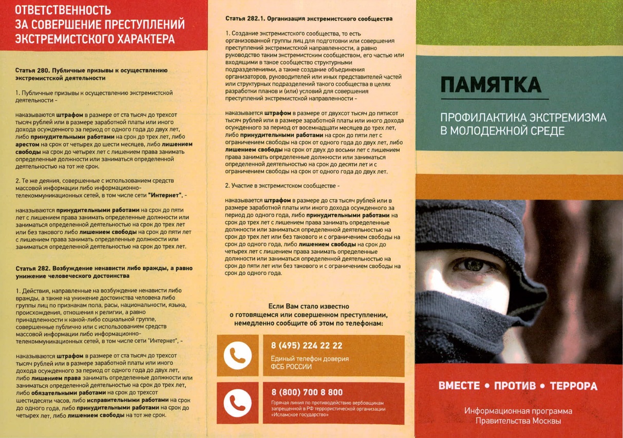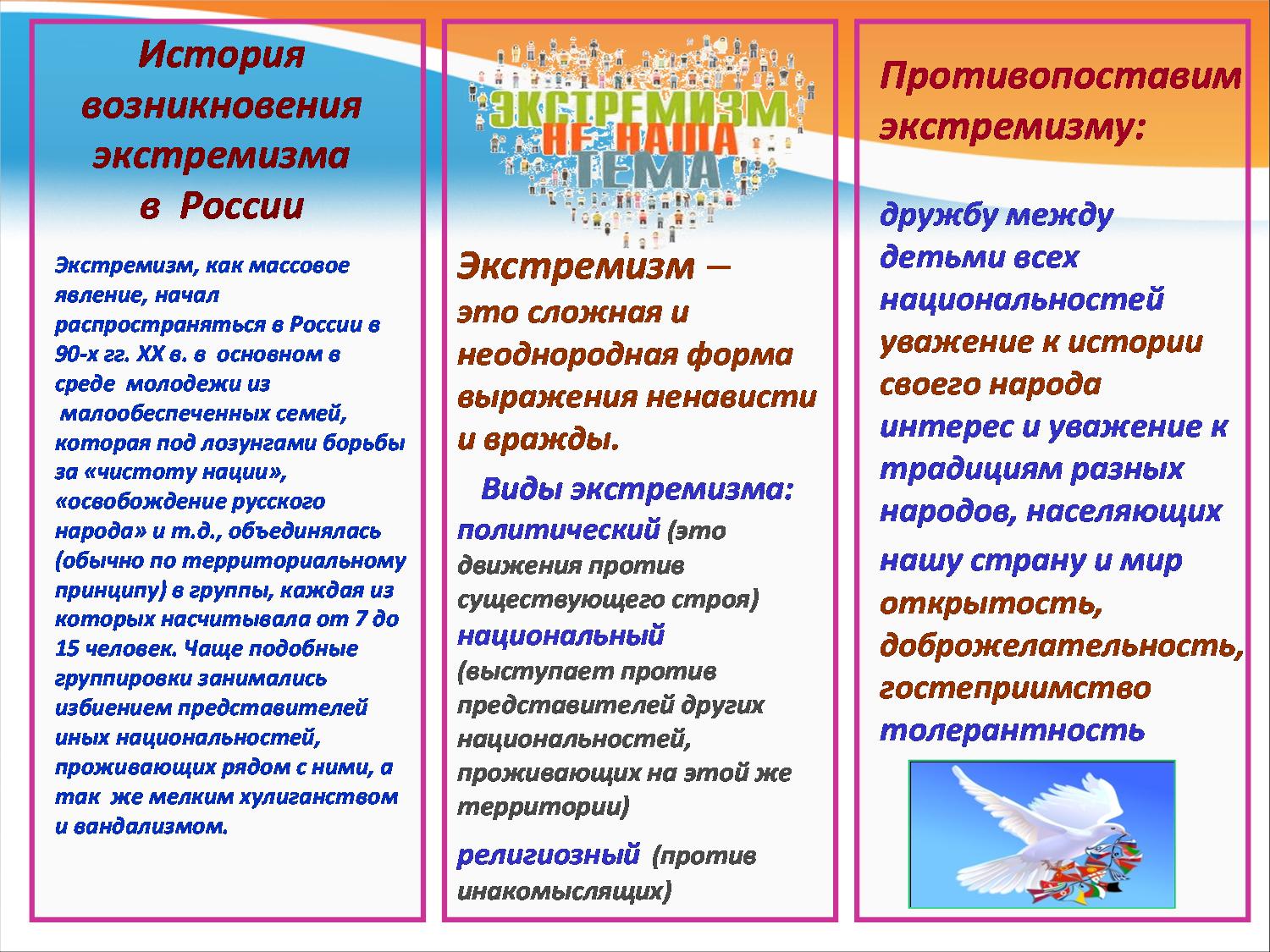 Информационно-справочные материалы "проблемы противодействия экстремизму в молодежной среде"