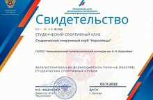 Поздравляю коллег и студентов с открытием спортивного клуба "Королёвцы" и с вхождением во Всероссийский реестр студенческих спортивных клубов