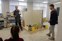 Второй день на базе Политехнического колледжа имени Е.Н.Королёва реализуются мастер-классы для студентов строительно-технологического отделения по современным , инновационным строительным материалам специалистами компании Сен-Гобен.