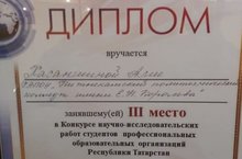 Поздравляем Хасаншину Алию и её научного руководителя Муллагалиеву Татьяну Сергеевну с 3 местом на конкурсе научно-исследовательских работ