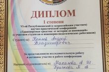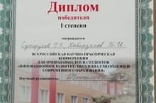 28 февраля 2019 года в Елабужском политехнической колледже прошла Всероссийская научно-практическая конференция преподавателей и студентов "Инновационное развитие: потенциал молодежи и современного образования". Студенты группы 561 Сухоруков Глеб и Хабирзянов Булат получили диплом I степени (руководитель Шипилова Г.К.), а также ребята получили Диплом в номинации "Решение социальных проблем". Поздравляем ребят и руководителя, желаем дальнейших успехов!