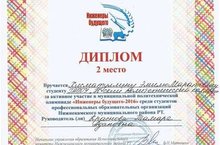 22.04.2016 на базе Нижнекамского агропромышленного колледжа проводилась муниципальная политехническая олимпиада «Инженеры будущего-2016» среди студентов профессиональных образовательных организаций Нижнекамского муниципального района РТ. Студент группы 341 Хисматуллин Эмиль принял участие в олимпиаде и занял 2место. Руководитель Краснова Тамара Адановна.