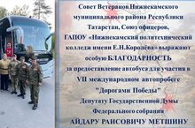 Благодарю своих коллег Политехнического колледжа имени Е.Н.Королёва, председателя Совета ветеранов строительной отрасли НМР РТ Филиппова Валерия Петровича и двух сотрудников МУП КПБ.
