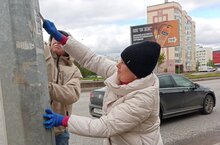 Выпускники колледжа сигналили , видя нас на трассе по проспекту Мира, оставляли машины возле торговых центров и помогали нам в очистке столбов. " Так сказать "всем Миром".