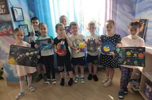 Для ребят подготовительной группы #7 воспитатель Альбина Ивановна подготовила тематическое занятие «Космос». Дети познакомились с историей возникновения праздника, слушали рассказы о Юрии Гагарине и других героях, которые покорили космос.