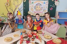 И сегодня в нашем детском саду прошли игровые развлечения «Гуляй, Масленица!». Дети, нарядившись в яркие расписные платки, весело и шумно отпраздновали Масленицу! В завершении детей ждали очень вкусные блины. -