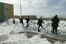 В субботу, 18 марта, весь коллектив нашего ДОУ вышел на субботник по раскидываю снега на территории ДОУ, а так на прикрепленной к детскому саду территории.