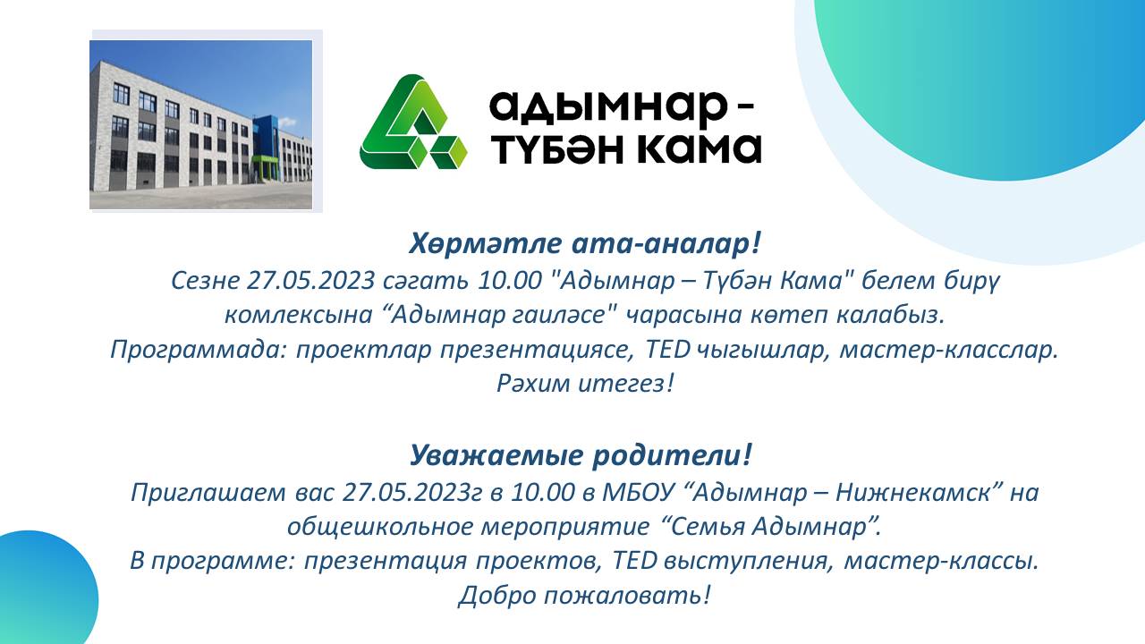 Приглашение на общешкольное мероприятие “Семья Адымнар”