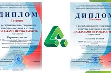 6 А сыйныфы укучысы Абдуллина Динә лауреат дипломы белән бүләкләнде ("Табигый фәннәр"секциясе);17 февраля в НХТИ ФГБОУ ВО “КНИТУ” состоялась XXI республиканская юношеская научно-исследовательская конференция имени С.С.Молодцова.