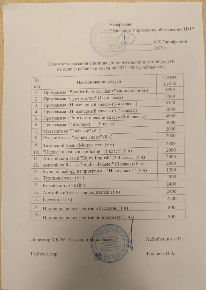 Короткое название: МБОУ «Адымнар - Нижнекамск» НМР РТ